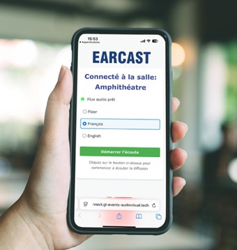 Our solutions are built on cutting-edge equipment, responsive logistics, and expert technical teams. EARCAST was designed to complement our audiovisual offering with an agile, mobile, and intuitive solution, perfectly suited to today’s event challenges : flexibility, technical efficiency, accessibility, and performance.